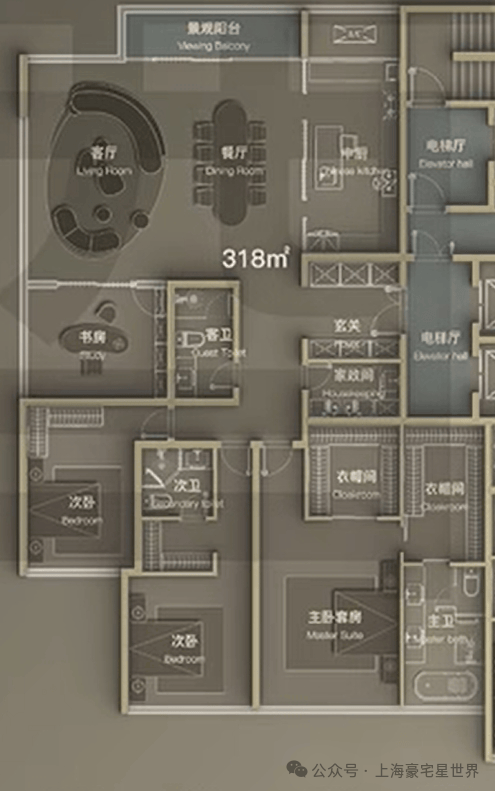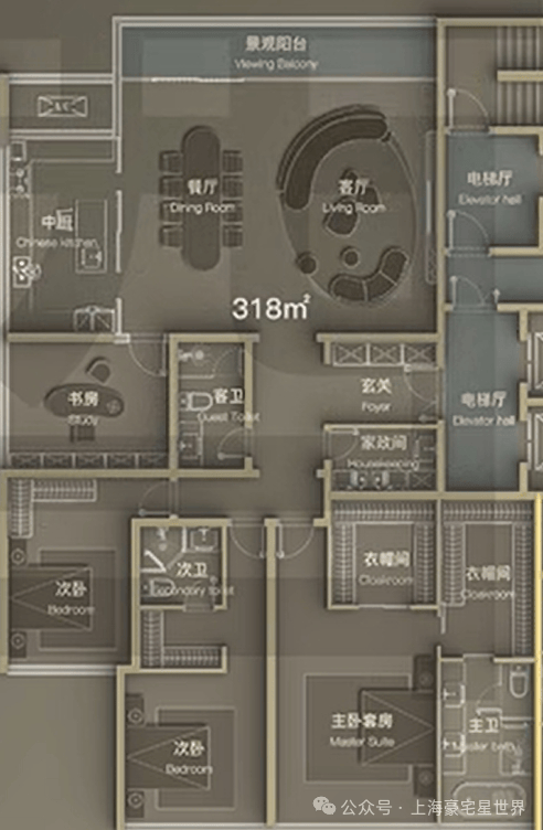建面约318㎡四室两厅三卫