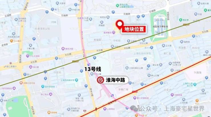 项目位于凯德茂名公馆的东侧,邻近13号线淮海中路站,地块的北侧是巨鹿路,一街之隔是延中广场。