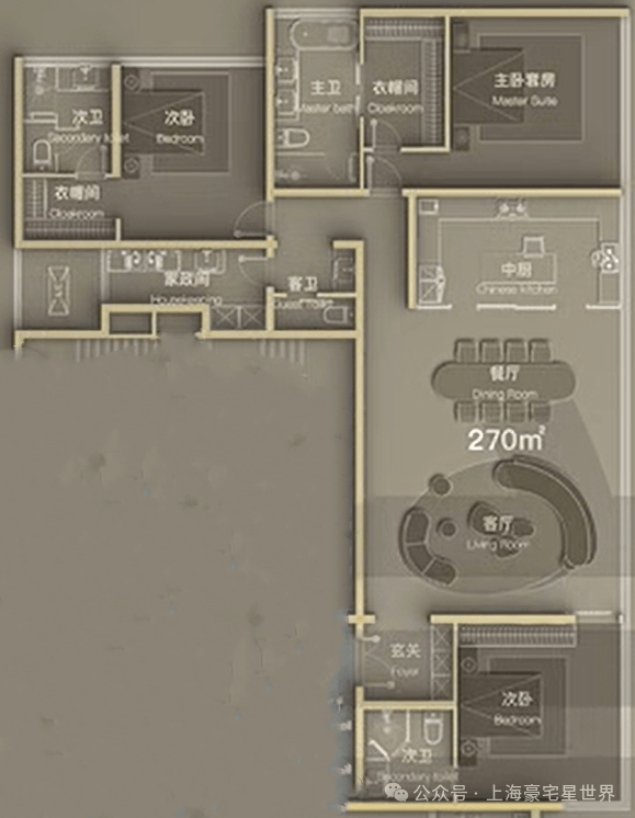 建面约270㎡三室两厅四卫