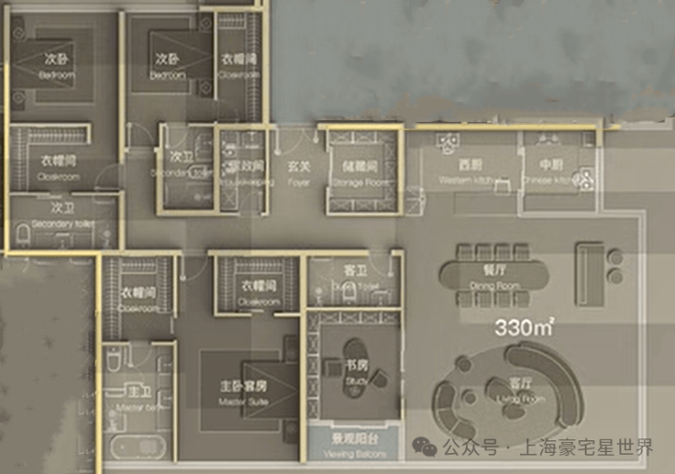 建面约330㎡四室两厅四卫