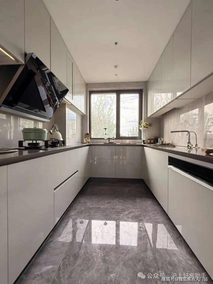 U型厨房:厨房采用U型布局,并巧妙融入飘窗元素,拓宽视野同时增添休闲氛围。