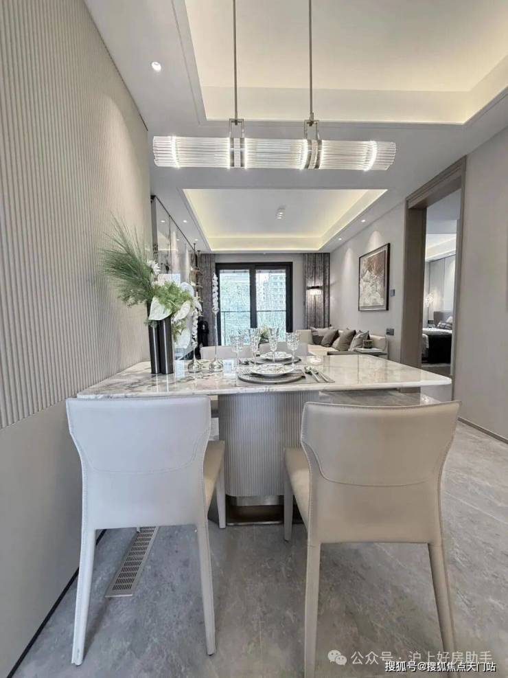 踏入138平的4房空间,能够明显感觉到尺度感和舒适度的大幅提升!三开间朝南的宏伟格局在眼前展开,阳光与风景扑面而来,从样板间的窗口甚至能够直面张江地标双子塔!