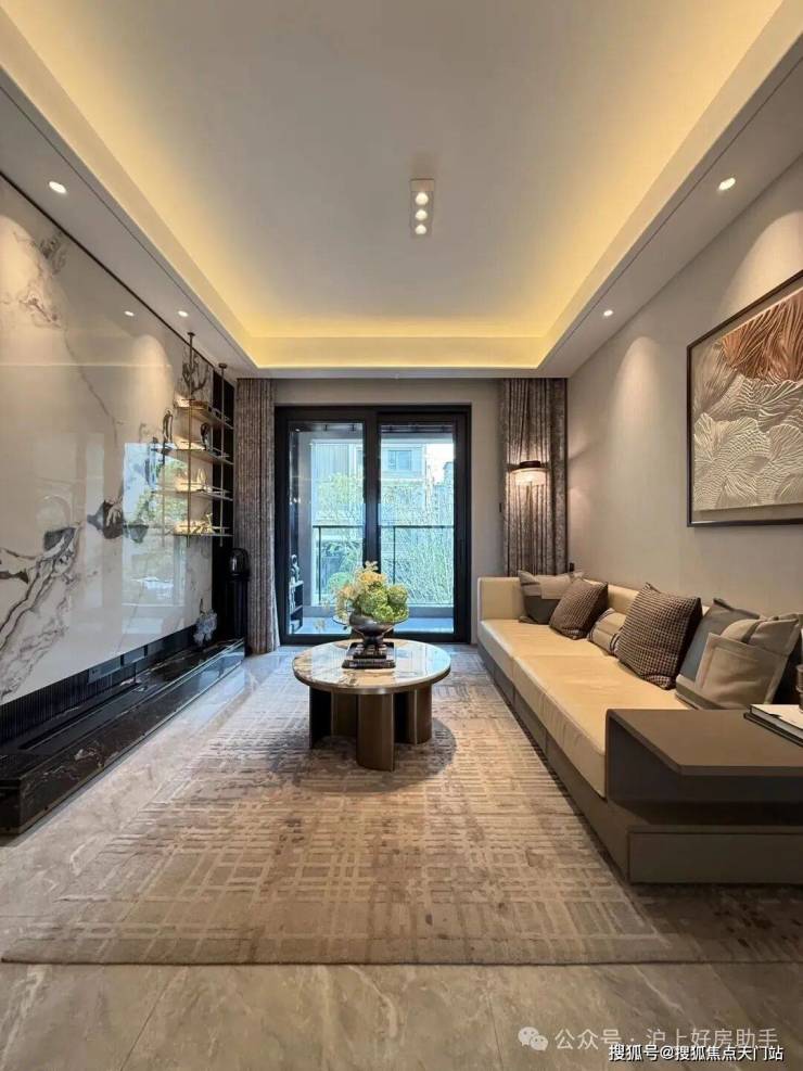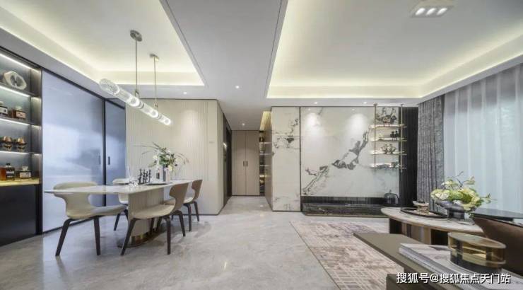 金茂定制壁布/墙纸:结合芬迪白岩板打造的客厅背景墙,营造独特的归家氛围。