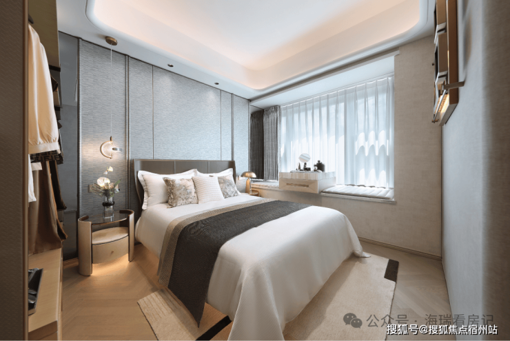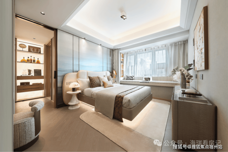 室内采用约5米超尺横厅设计,外接同等面宽观景阳台,形成通透开阔的公共场域。无论是家庭休闲还是社交待客,皆能从容应对。主卧面宽3.2米、含飘窗总进深4.15米,豪华套房设计配备豪华卫浴与独立衣帽间,兼顾舒适度与私密性,真正实现改善置业一步到位。