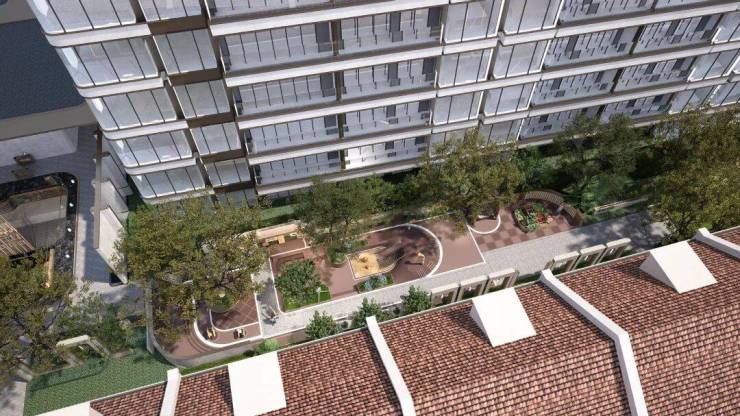 海派生活轴的端点是邻里交互的艺术花园,是业主茶余饭后散步的好去处。
