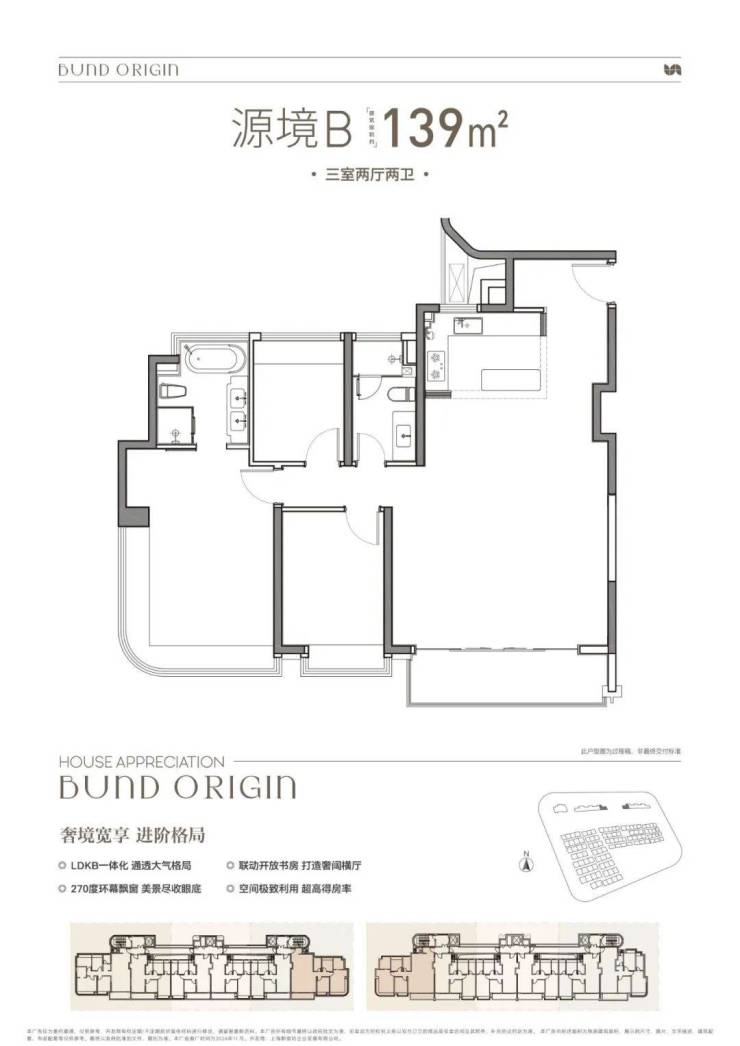 项目 建面约139㎡3房2厅2卫、建面约145㎡4房2厅2卫户型,都是三开间朝南+宽景阳台+主卧套房设计,空间尺度更加奢阔,居住舒适度更高,适配更高层次的居住需求。