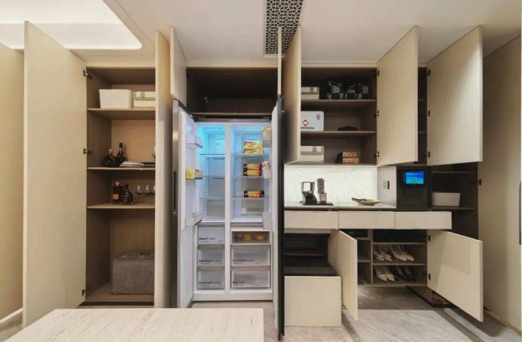 厨房外的半开放式餐边柜同样也作为交付标准,柜体额外提供接近1立方面积的收纳空间。