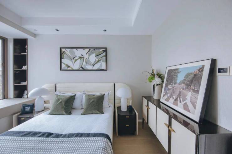 客厅三开间朝南,方正格局,功能区域分布清晰,动线灵活,没有廊道空间的浪费,充分利用每一寸室内空间。