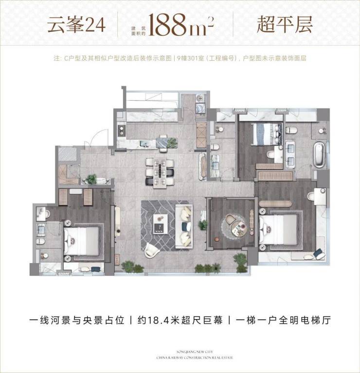 本次加推涵盖建面约155-188㎡的大平层及叠加产品,部分户型配备多阳台、大横厅等特色,满足改善家庭多元需求,共计56套房源,备案均价约6.12万元/㎡。