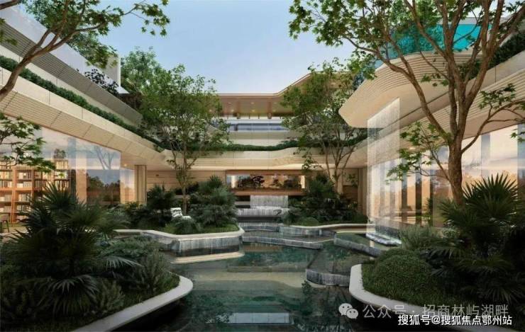 板块内领创“峡谷”意境的下沉式立体庭院,在约420平米的垂直面中,通过多层花池、叠水、软景塑造立体层次观感,遴选多种珍贵苗木,立体庭院贯通风雨连廊,给予五星级度假酒店般的空间体验。