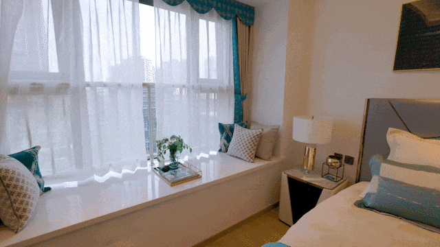 1.8米宽、0.8米深的飘窗设计,早上起床拉开飘窗,让夏日的味道立马能洒满整个房间,创造独属于自我的内心场域,一天的好心情从俯瞰园林风景开启。