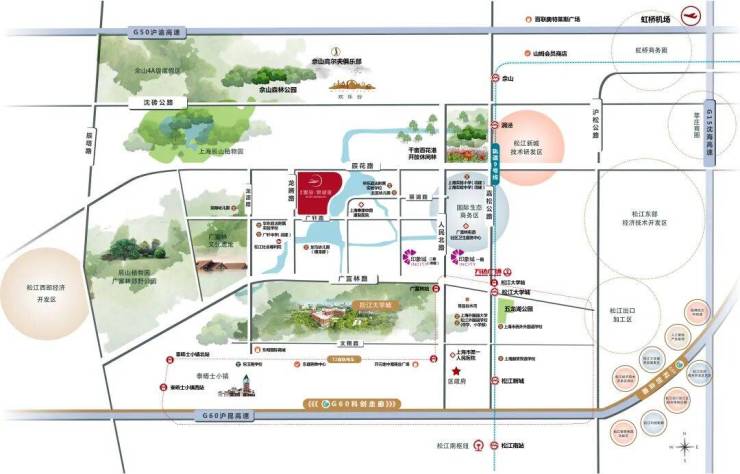 项目西侧约800米是4A景区广富林文化遗址、广富林郊野公园,项目北侧约2公里处辰山植物园、佘山旅游度假区、欢乐谷等等,是休闲娱乐的好去处。