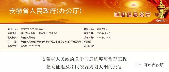 近日,六安市人民政府公布了关于安徽省人民政府批复杭埠河治理工程建设征地及移民安置规划大纲详细信息。