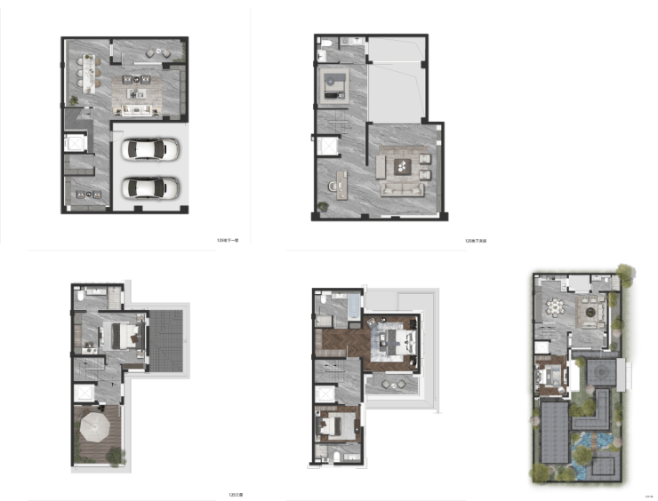 约126㎡的明星户型做到了5套房设计,地下一层、地上三层的空间形态,将空间尺度无限放大。