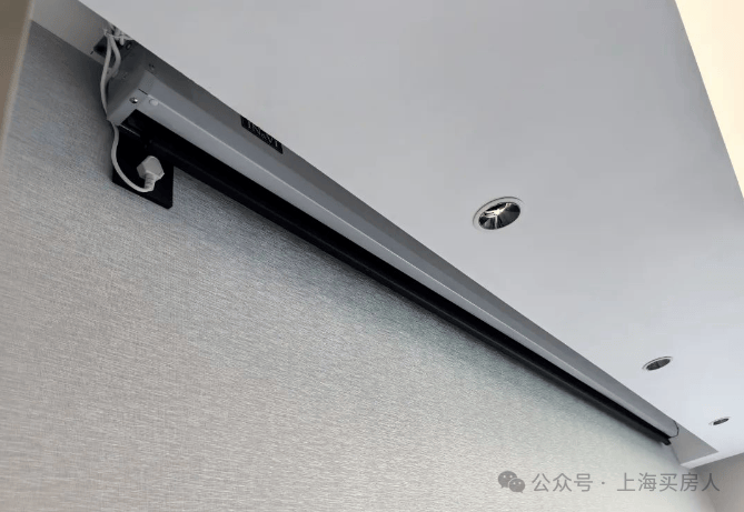 我们有听说配备电视背景墙的,但应该全上海都没听说过标配投影幕布的吧——时代乐章全屋预留投影仪卡槽点位、装配电机及投影幕布,避免后期自行装修破坏墙面,投影也是年轻人更能接受的生活方式;同时,客厅空间也显得更大更实用,背景墙+电视的搭配相对更厚重一些。