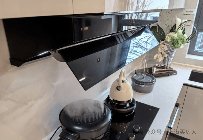 其中,项目采用侧吸式油烟机释放视觉空间,感应功能也让烹饪更加得心应手: