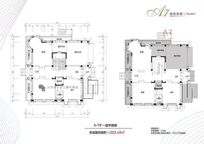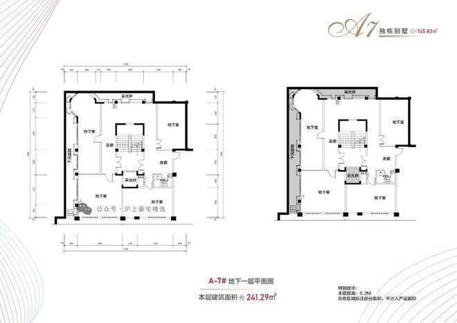 布局:地上三层(4.5米层高)+地下一层(6.2米层高)+900㎡花园