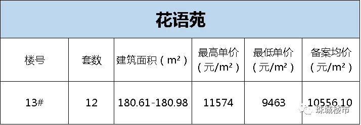 此次花语苑项目备案套数仅有12套,且面积较大,备案均价过万,较高单价为11574元/㎡,较低单价9463元/㎡;