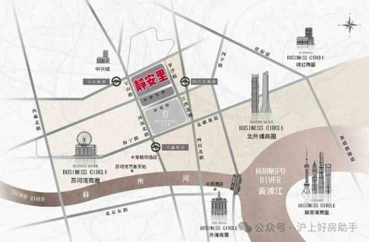 该地块位于静安内环内,旁边就是弘安里。武进路正是虹口静安交界,此次04-05、05-01地块属于静安,对面弘安里地块属于虹口;地块直线距苏州河约1公里,直线距外滩约1.4公里,直线距北外滩约1.7公里,直线距3/4号线宝山路站约300米,直线距10号线四川北路站约560米,区位优势明显。