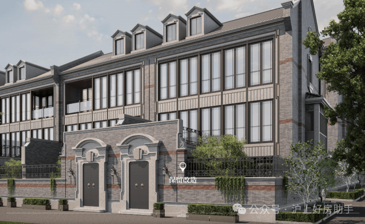 比如,典型的石库门和独特的排窗样式被很好地传承了下来;但与此同时,水砂石立面提升成了更高级的石材,并以此融入了地块中本就浓烈的欧式建筑风格,让保改建筑也以更适合当代的形制新生。