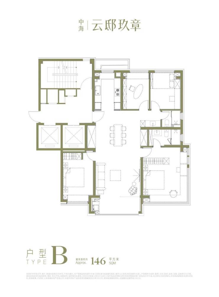 · 146㎡四房:真四房功能性+奢阔尺度,适配多孩家庭或三代同堂需求。