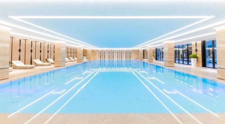 社区的配套和入户设计也尽显精致,每个楼栋都做了地上地下双大堂精装入户,挑空 4.9 米,墙面地面全是雅柏白石材,金属部位都用铜质点缀,石材和金属相互映衬,高级感拉满,不管是从地上回家还是地下车库入户,都有满满的尊贵感。社区还有约 3500㎡的配套空间,里面有镜面恒温泳池、健身中心、瑜伽舞蹈房,业主日常健身、休闲都能在家门口解决,生活幸福感直接提升。值得一提,
