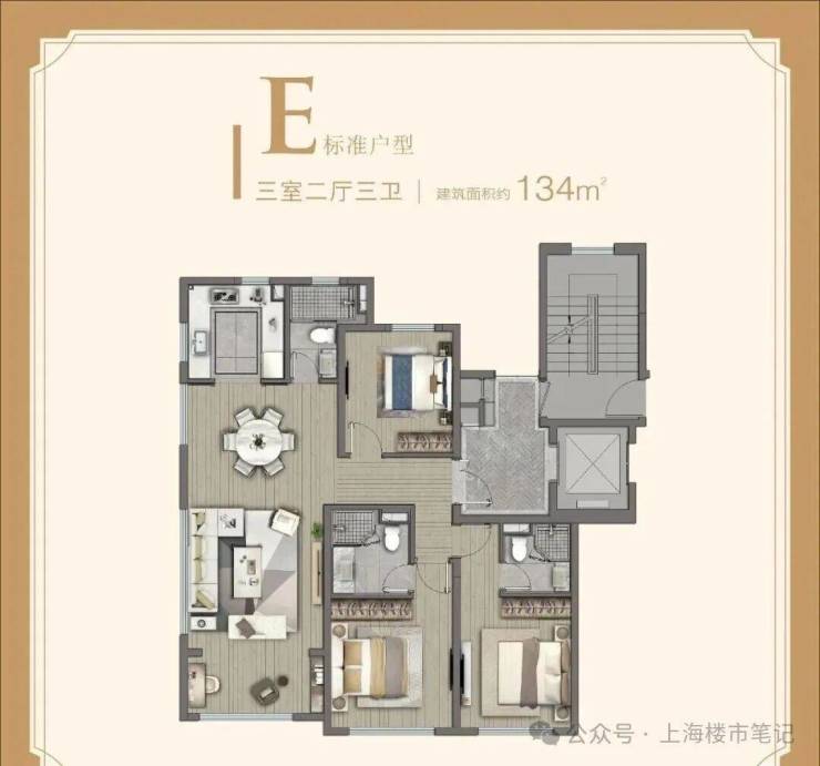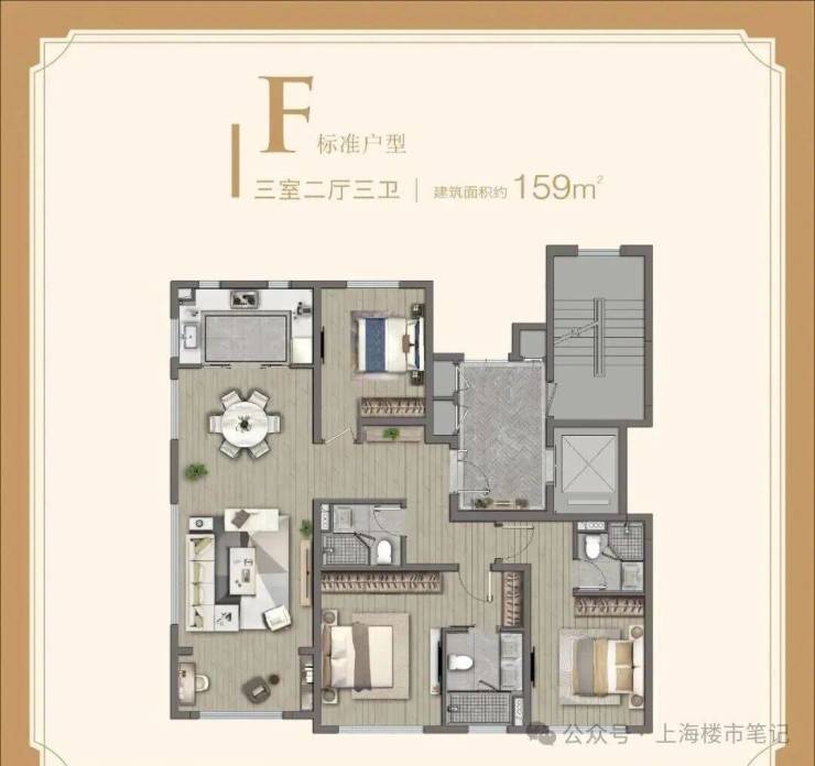 尤其是159㎡的三房,独立电梯厅的面积更是接近10㎡,进一步满足业主的个性化需求。
