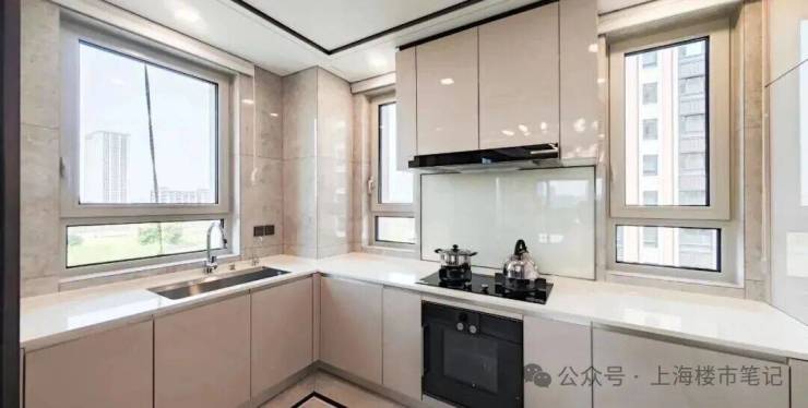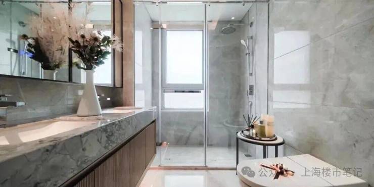 除了大牌加持,细节上更是拉满,3.15 米的层高,比普通住宅更通透不压抑;全屋墙纸交付,质感更好;皮质电视背景墙、一门到顶的房间门,颜值和实用性兼备;灶台墙的整块玻璃、卫生间的整块大理石台面,看似不起眼的细节,背后都是精湛的工艺和高昂的成本,宝华对产品的精益求精,真的体现在每一个细节里。