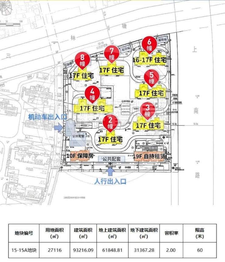 该项目容积率2.0,拟建7幢17层高层商品住宅、1幢19层自持租赁房、1幢10层公共租赁(保障房),以及3层配套公建用房等