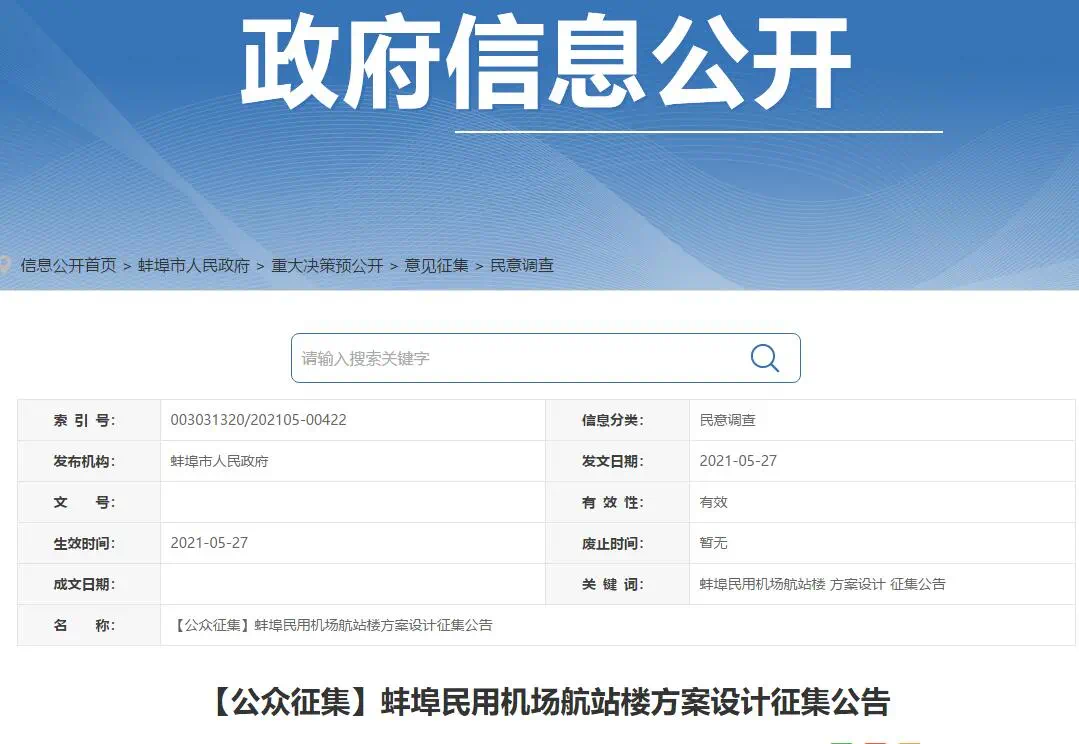 较新进展:蚌埠民用机场航站楼 方案设计征集公告