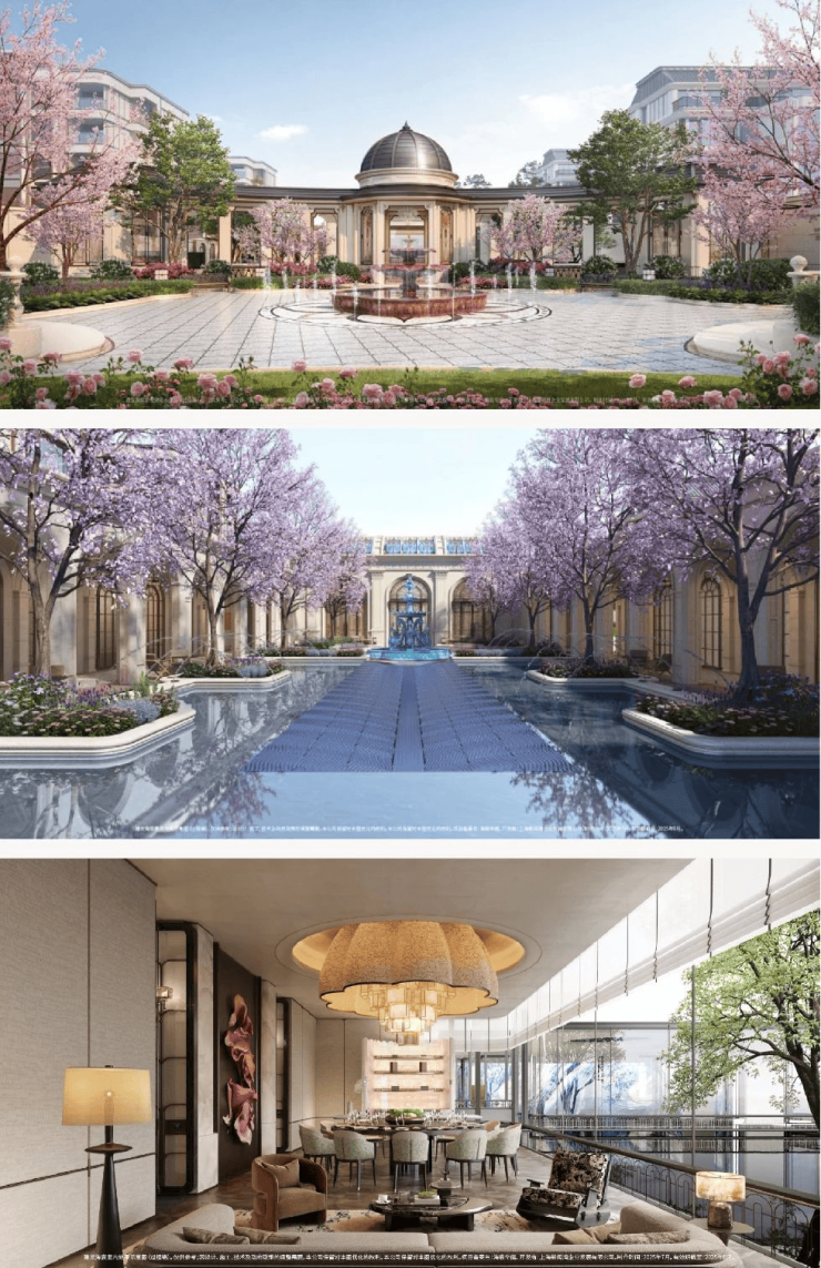 以水为引,起承转合,以海天华堂、华亭烟雨、凤亭问泉,清涟夜月、黄浦秋涛等景观组团,悠然铺陈东方院落式归家礼序。