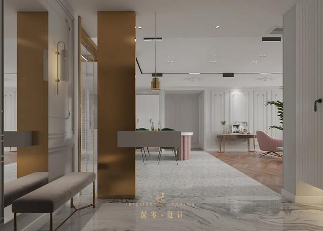 考虑到采光和隐私性,隔断可选择镂空或透光不透明的玻璃材质,比如:长虹玻璃、磨砂玻璃、木质隔断、金属隔断等。