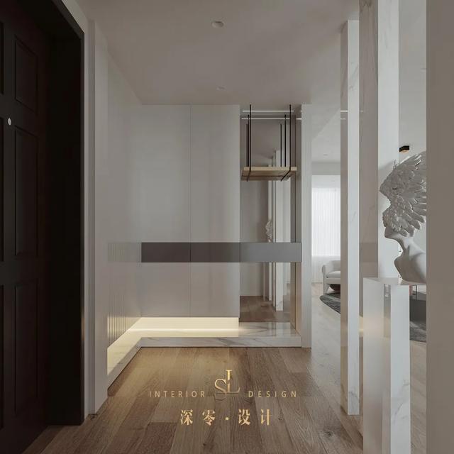 家里人来来回回的,玄关肯定要有一定的储物空间,不然鞋子都没地方放。