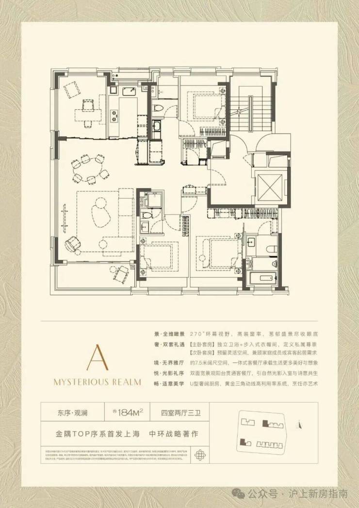 稀缺景观:金隅·公园东序最大的亮点是直面约百万方的桃浦中央公园。特别是184㎡的‘全景舱’户型,设计了270度的环幕窗景,相当于每天醒来,整个中央公园都成了您家的私人背景墙。" 这种资源在寸土寸金的中环区域是绝无仅有的。