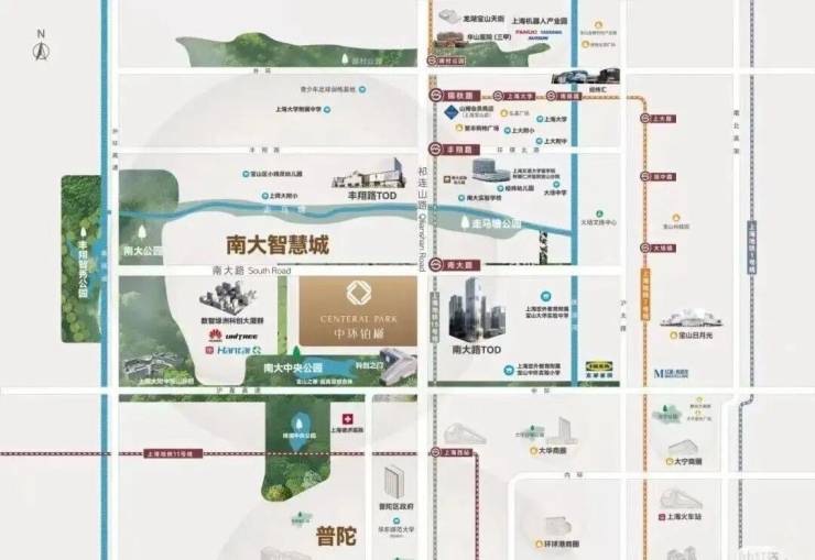 约20万㎡南大中央公园(建设中),紧邻社区500米。建成后与桃浦中央绿地共建的超级绿楔,形成上海中心城区最大连片生态矩阵。