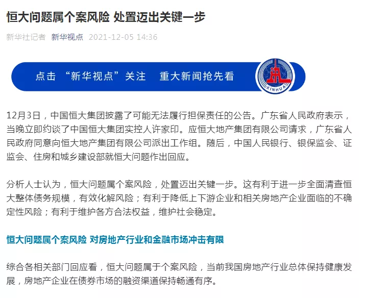 根据新华社昨日发布的较新消息来看备受关注的恒大问题处置迈出了关键一步