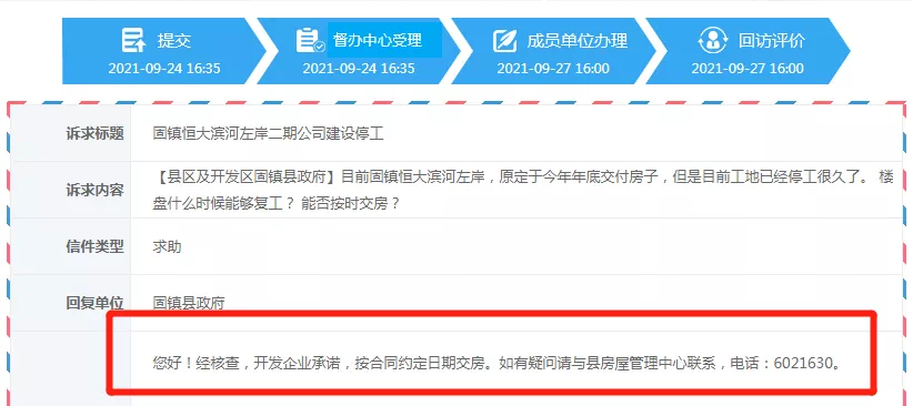 固镇县政府回复可以看出,该项目开发企业承诺,会按照合同约定日期交房;