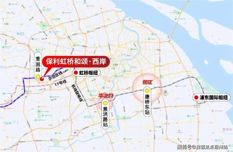保利虹桥和颂·西岸直线距离示范区线重固路站(在建) 约600米,是300万+级少有的 地铁房!