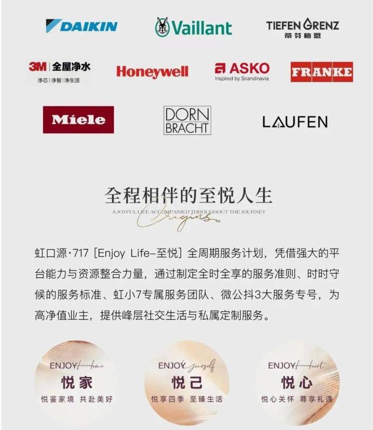 臻选DAIKIN中央空调、 TIEFEN GRENZ新风系统、Vaillant地暖,更有3M净水、Honeywell智能家居及ASKO高端厨电等奢装标准交付。