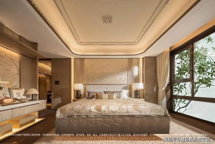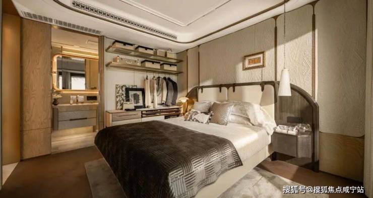 奢石材质与升级定制体系上,主卧标配约4.6米超大面宽贝母马赛克弧形皮革背景墙,地面采用和保利世博天悦顶豪项目同款的嵌铜荷叶拼地板,且嵌铜花色可以选择。玄关+背景墙升级为天然石材,真正实现“一户一宅” 的高定体验。