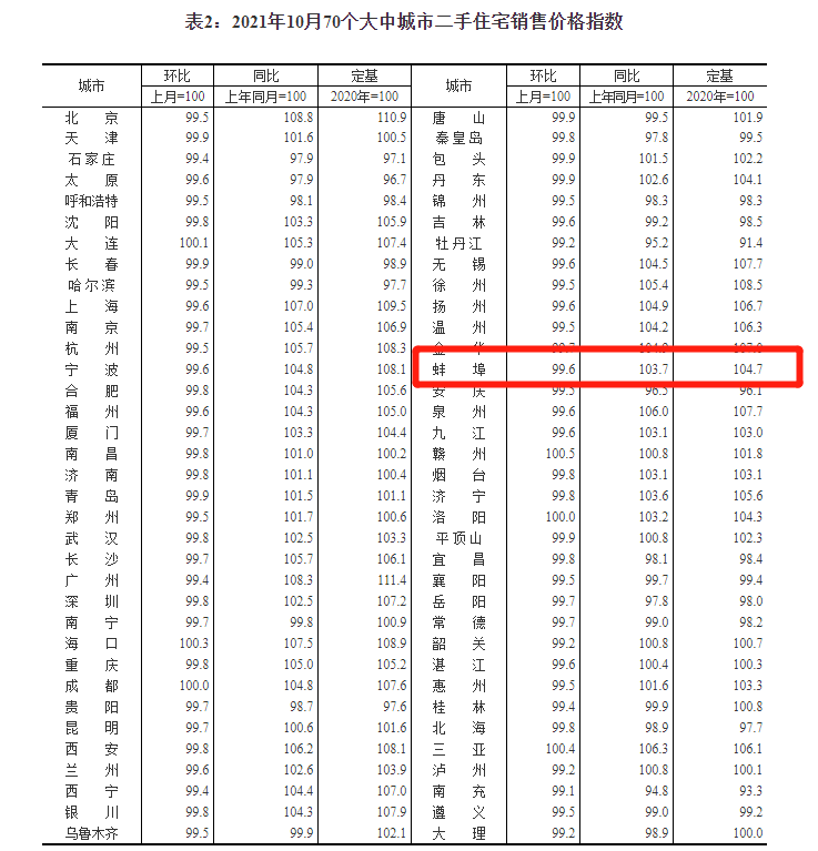 从表格来看,蚌埠新房10月环比下降0.2%,同比上涨2.2%;