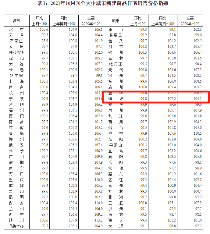 统计局刚刚发布!蚌埠新房连降两个月 10月环比下降0.2%!
