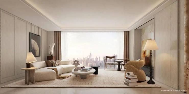 户型打造上,更是以国际豪宅标准精雕细琢:一梯一户的私密玄关,彰显归家的尊崇仪式感;约 15 米巨幅南向面宽、近 11 米景观落地窗,将自然光影与江园盛景引入室内,让空间与自然无缝衔接。