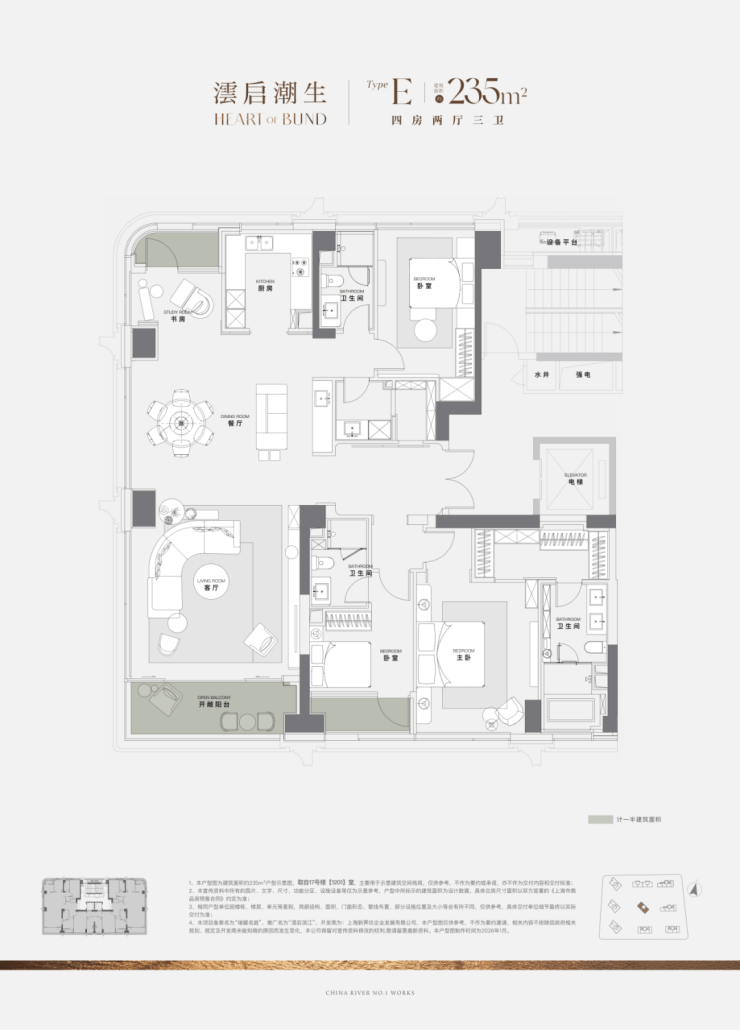 KING235 作为此次四批次全景舱大宅的重磅之作,雄踞社区 9 栋围合式布局的正中央核心位置,是当之无愧的滨江王座。