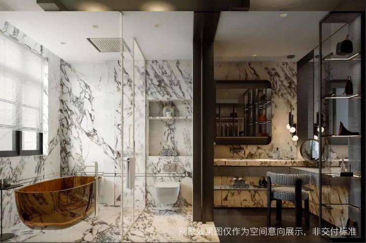 男女衣帽区的设计,更藏着对生活品质的追求,男主人区可以定制整面墙的旋转衣架,西装、衬衫、高尔夫球服按颜色排列,女主人区可以打造嵌入式衣柜,靠窗的首饰台,让清晨的护肤仪式,夜晚的首饰整理,都成了充满仪式感的日常。