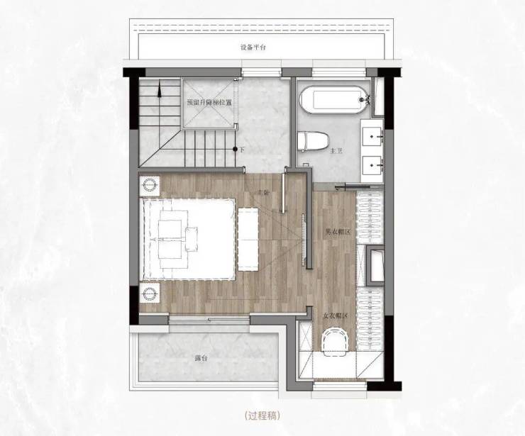 三层是精神的栖息所,以整层主卧套房的姿态,将"私属感"与"仪式感"推向新高度,不只是睡觉的地方,更是主人的"精神自留地"。