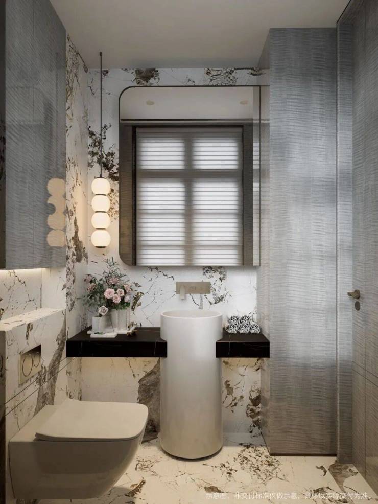 开阔的卧室空间,独立主卫设计,双台盆让晨间洗漱不再拥挤,浴缸正对着窗,泡澡时能看美景在玻璃上流淌,细节里全是"被照顾"的温柔。