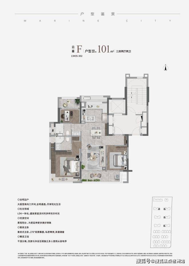 为不同家庭定制生长型空间,勾勒出不同的生活场景,建面约101㎡ 进阶三房,更懂你对生活的向往。