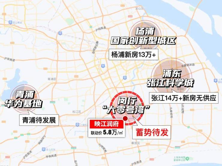 要知道,上海这座城市的历史底蕴和未来顶层规划一直都深藏在黄浦江两岸,目前中环内一线滨江的住宅价格基本都超过17万/㎡。映江润府隔壁的吴泾也超过8万/㎡。