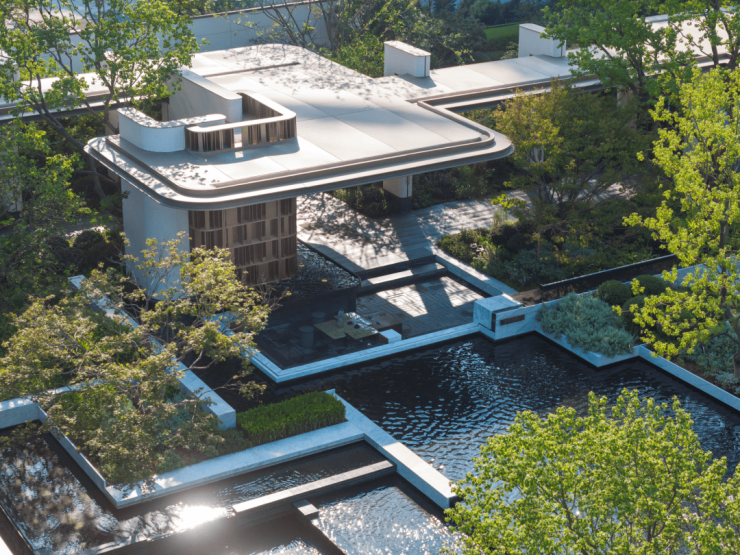 示范区首批次公开的约650㎡的无界水院,通过层层叠水与精选树种的巧妙搭配,展现了水院的悠然意境。